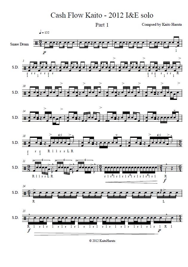 2012年、Drum Corps International Open Class Individual & Ensemble Contest Snare Solo部門にて優勝 動画はこちらから